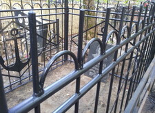 Далее демонтируем все с территории могилы и выпрямляем ограду. Для этого потребовалось полностью откопать две задние ножки, выпрямить ограду и заново залить цементом.